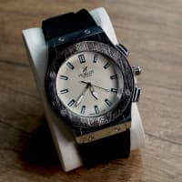 Hublot kumush rang ko'rinishi bilan erkakcha soat! Rasmiy tadbirga tashrif buyurasizmi yoki oddiygina kundalik ishlaringiz bilan shug‘ullanasizmi, Hublot kumush rang har qanday kiyimni osonlik bilan moslashib keta oladi. O'zining ko'p qirrali uslubi bilan ushbu soat ansamblingizga nafislik qo'shadigan va qayerga borsangiz ham sizni uyaltirib qo'ymaydi! Bundan tashqari qorong'uda uning belgilari fosfor bo'lganligi uchun nur sochadi! ranglari: qora tasma va kumushrang korpus. tasmasi: rezina va jiddiy! ishlashi: QUARTZ,(batareya bilan ishlaydi!)